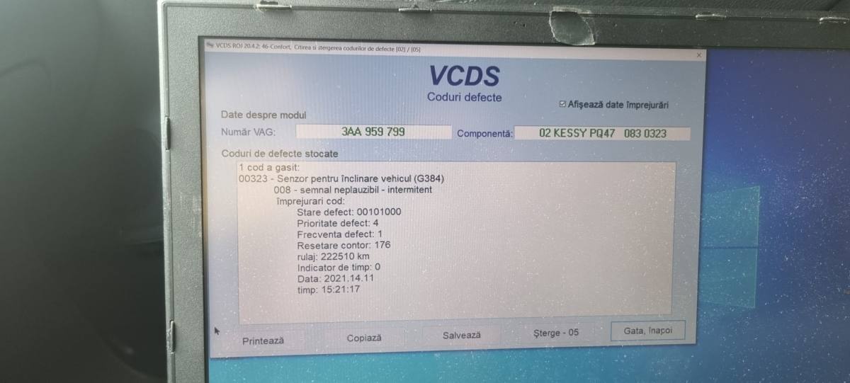 Buna ziua . am si eu aceste 2 erori la un passat b7 2,0 tdi din 2012. Am inteles ca senzor inclinare este la oglinda retrovizoare?