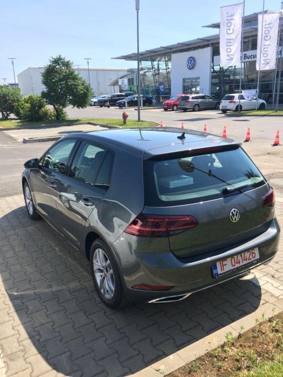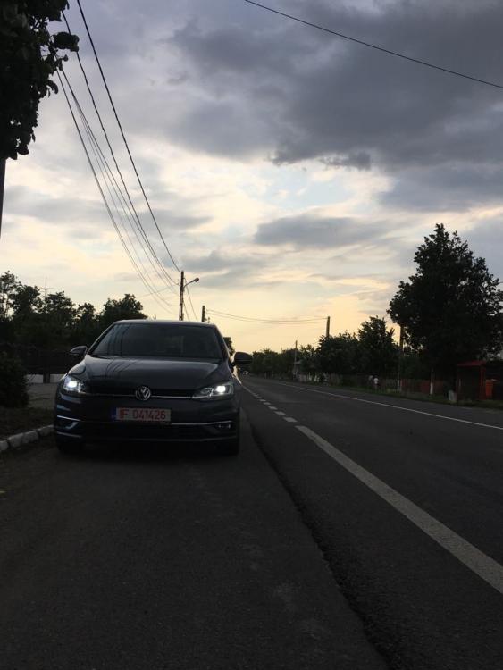 Bine v-am gasit, domnilor! Zilele trecute am ridicat masina, dupa 2 luni lungi de asteptare, precedate de asemenea de cateva saptamani bune de research, hotarari, razgandiri. Am vrut sa fiu absolut sigur ca iau cea mai buna decizie in ceea ce priveste nevoi, placere generata, cost si raport calitate pret. Am vrut ceva VAG, pentru ca in mod mai mult sau mai putin subiectiv Renault, Mazda, Ford si asiaticele mi-au parasit destul de repede lista. Si dupa o mini-medi-maxi tentativa de a lua un model vechi de Golf de pe stoc (la modul m-am culcat hotarat si m-am trezit razgandit), m-am apucat serios de configurat, iar decizia a venit dupa cateva nopti nedormite impreuna cu destule drumuri si mail-uri la diferiti dealeri. Este vorba de un Golf 7 Facelift 1.4 TSI 150 CP, cutie manuala, culoare Indium Grey, echipare Highline. In plus fata de Highline am adaugat: climatronic - greu de crezut ca in 2017 inca nu e standard... faruri LED TOP composition media + app-connect camera video Rear Assist - aici am facut un compromis dpdv al costului comparativ cu Park Pilot pachet technology cu: kessy alarma - nu stiu foarte multe despre ea stopuri LED rosu inchis cu design dinamic al semnalizarii iluminare placuta inmatriculare spate cu LED computer de bord premium - obligat de pachet technology, dar imi place cum arata pachet lumini si vizibilitate - din nou, dpmdv ar fi trebuit sa fie standard scaun Ergoactive - am vrut neaparat scaune incalzite si mi s-a parut un deal mai bun decat pachet iarna roata de rezerva de dimensiuni normale Ce nu are si imi lipseste: driving mode selection - initial nu l-am luat absolut deloc in considerare, iar cand mi-am dat eu seama ca il vreau neaparat, era deja prea tarziu oglinzi laterale rabatabile electric - la fel, initial m-am gandit ca nu merita si ca nu imi trebuie, acum nu mai gandesc asa Ce mi-ar fi placut sa aiba, dar am avut totusi un buget: DSG - aici cu un ochi plang si cu unul rad, avand in vedere ca e vorba totusi de DSG7 uscat, dar totusi mi-ar fi placut o cutie automata; better luck next time, maybe parbriz incalzit Privacy-glass - poate o rezolv candva cu o folie, dar nu-mi plac cele negre, si de folie gen OEM dpdv al culorii nu am citit nicaieri plafon negru - am vazut cat de bine arata pe un R-line din showroom si mi-a parut rau putin ca nu vine decat cu tapiserie bej trapa - dar aici deja intru in categoria mofturi Nu includ aici toate tehnologiile noi de asistenta, cel mai probabil pentru ca nu am avut contact cu ele pana acum ca sa imi dau seama ca le vreau. Sunt putin old-school in privinta asta, imi place mult sa conduc si nu stiu cat de tare as vrea sa ii las masinii privilegiul asta. Poate doar blind-spot as fi ales dintre ele. Impresii despre masina nu va pot spune foarte multe inca. Motorul a fost factorul decizional pentru masina asta, daca nu era forumul poate ca il luam pe cel de 125CP. Si a fost o alegere foarte foarte buna, este exact ce am asteptat, sunt impresionat de el. Si asta in conditiile rodajului, nu am mers tare deloc cu ea. Am trecut in vreo 5-6 momente de 3000RPM in cei aproape 1000km pe care i-am facut, dar progresiv, nu WOT, iar plaja 2500-3800 RPM mi-a placut mult. Nu am apucat sa testez inca ACC asa cum trebuie, dar la o prima vedere pare foarte interesant, cred ca mai ales pe autostrada se va dovedi a fi un mare plus. Ciudat totusi din partea VW Ro ca vine doar pe HL si nu poate fi adaugat pe restul. Kessy imi place destul de mult, desi trebuie sa recunosc ca daca nu era in Pachet Technology, probabil ca nu il bifam. App-connect imi place, insa fiind fan iOS, trebuie sa gasesc o solutie de mirroring 1:1 pentru Waze si Youtube pe display. Cel mai probabil un al doilea telefon, inca ma obisnuiesc cu masina si studiez problema. Stopurile sunt de efect, imi place cum se integreaza culoarea cu aspectul lor fumuriu. Imi era teama ca va fi prea inchisa masina si ca ar fi trebuit sa merg pe alb, dar pachetul faruri inchise, stopuri inchise si culoare gri chiar o prinde bine. Plus: design-ul separat stopuri - frana, cum este si pe Passat B8. Si pentru ca perfectiunea nu exista, sunt cateva chestii care nu imi plac la masinuta, cum ar fi fusta spate cu design-ul de evacuari false stanga-dreapta. Apoi, imi sta pe creier suprafata uriasa de piano black de pe bord. Nu spun neaparat ca nu imi place cum arata, dar viitoarele zgarieturi care sunt inevitabile pur si simplu nu ma lasa sa fiu linistit momentan. Trebuie neaparat sa ma echipez cu solutii de curatare si intrebtinere, in special pentru partea asta. Si inca o chestie, nu am reusit sa conectez alt telefon prin bluetooth, in timp ce am unul deja in USB folosit pentru App-Connect. Recunosc ca inca nu am avut timp sa citesc manualul, dar nu cred sa fie vreo chestie de activat din infotainment. Cat despre planurile de viitor, primele pe care le am in minte sunt niste jante mai mari, probabil 18" impreuna cu arcuri care sa o lase mai jos. Si cum "portofel dislikes me and golf" probabil ca prin primavara viitoare voi apuca sa le iau si sa le montez. Apoi, sky is the limit, sunt foarte curios daca exista vreo fusta spate OEM care sa imi elibereze evacuarea, sa scap de design-ul asta cu evacuari false care e de departe primul lucru care nu imi place la masina asta. Pe termen scurt, am pe lista o folie pentru faruri si proiectoare (inca nu sunt hotarat pentru bara si capota), folie pentru composition media, vreau sa scap de suportii de numar pentru un clean look, sa schimb lumanarea aceea de lumina din portbagaj cu ceva LED, si sa ma interesez daca pot pune lumini la picioare in spate si eventual acea banda de lumini ambientale si in spate. Am scris foarte mult, mai povestim si cu alte ocazii. Let the photos begin:1 point