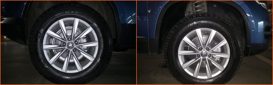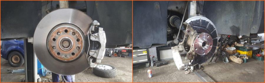 Am terminat si cu piesele de mai sus . - Inlocuit placutele de frana pe fata cu cele ATE apoi aerisit franele cu lichidul OE. - Schimbat rulmentul suspect , a fost justificat deoarece avea vaselina iesita prin incheieturi deci clar urma sa isi dea duhul - apoi am schimbat toate suruburile de la punte si am montat si distantierele necesare rigidizarii caroseriei . Chiar se simte o diferenta la urcatul unei borduri sau in alte situatii specifice. - La final am facut si "retusurile" necesare etrierilor si protectiior de disc , acum arata cam asa : Ansamblul total este cam asa : Va urma inca o revizie pe anul acesta. In rest aduna km cuminte.4 points