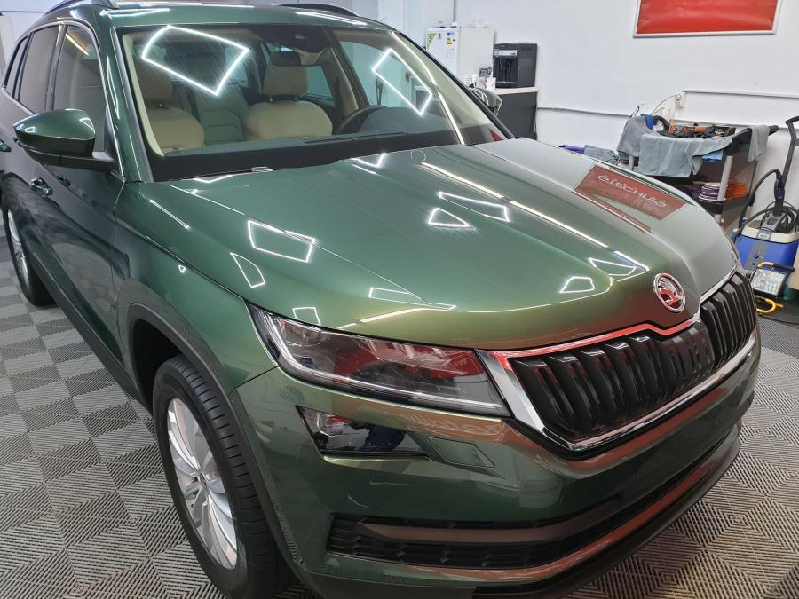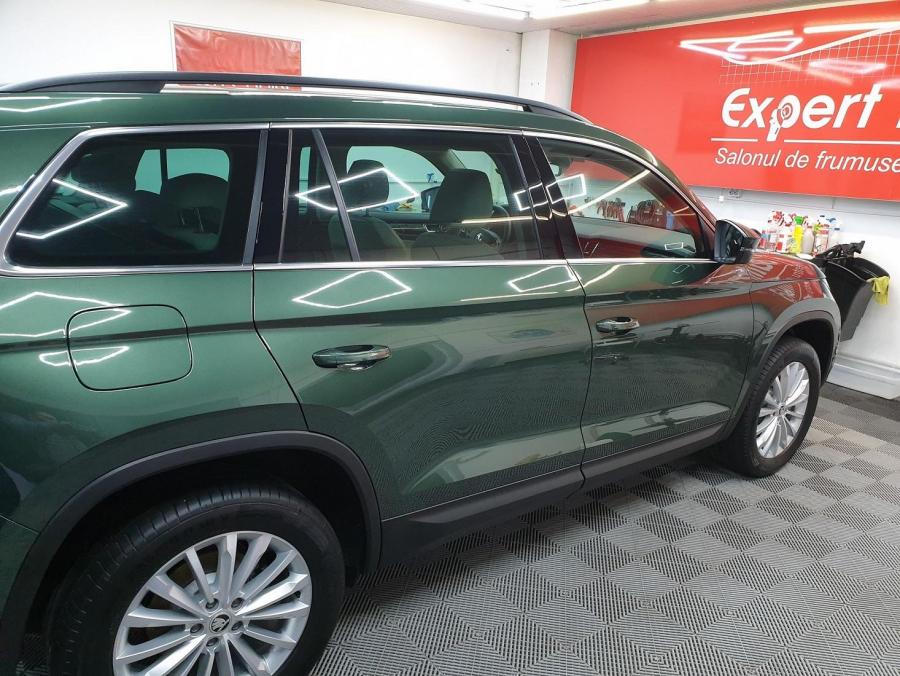 Dupa ce am "maritat" Q5-ul am cautat un inlocuitor tot din familia VAG si fiindca Kodiaq-ul imi facea cu ochiul inca de cand a aparut am decis sa fac pasul hotarator. Fiindca aveam nevoie de masina relativ repede si nu aveam chef de asteptat 3-4 luni am mers pe varianta masina second. Si avem una bucata Kodiaq Style 2.0 TDI 190 cu urmatoarele dotari : Verde smarald, Interior piele/piele artificiala, Incalzire stationara cu telecomanda, Scaune fata reglabile electric cu memorie, ventilate si incalzite, Volan incalzit, Scaune spate incalzite, Parking assistant, Jante aliaj Trinity, Duze stropitoare parbriz incalzite, Trapa plafon panoramica, Sistem navigatie Amundsen, Sunset, Area view si pachet led exterior, Sound system Canton, Inteligent light assistant, Lane assistant si blind spot detection, Roata de rezerva de dimensiuni reduse, Driving mode selection, Detectare oboseala sofer, Virtual cockpit si Skoda connect. Masina avea 15.000 km cand am luat-o si necesita putina atentie pe partea exterioara asa ca saptamana trecuta am fost la "salon" unde a primit un polish si protectie ceramica Gtechnic. Ce nu imi place : faptul ca are jantele cu ET mare si sunt intrate foarte mult sub caroserie se va rezolva prin achizitia altor jante de 19 cu ET mai mic si J mai mare, lipsa suportului de numar fata... Ce nu are si mi-as fi dorit : sasiu adaptativ si navigatia Columbus deoarece la Amundsen cei de la Skoda s-au zgarcit si nu au pus si Dvd player ca la Tiguan. Planuri de viitor : folie navigatie, rama grila fata Sportline care cred ca va ajunge saptamana asta, infoliere trim-uri geamuri deoarece cele argintii deja sunt "varza", embleme negre fata si spate de pe superskoda, arcuri H&R sau Eibach, semnalizari oglinda dinamice, retrofit la Columbus si sigur vor mai urma...1 point