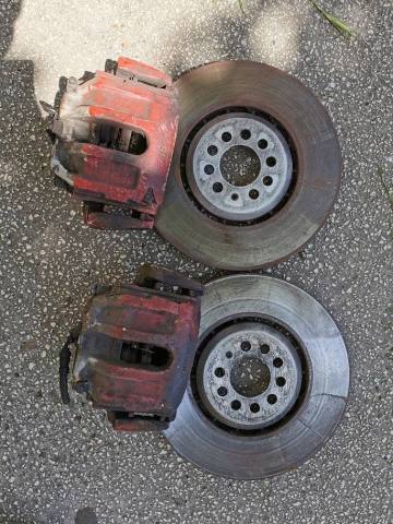 Si am facut si prima iesire dupaperioada de carantina. las o poza facuta pe fuga . pana la urma cred ca am rezolvat si cu franele. Pentru fata am avut de ales intre etrierii de R32 , Leon Cupra R , Porsche Boxster si cei de Ibiza Cupra R. Cel mai rapid am gasit un set de pe un audi TT 3.2 similar cu cel de pe golf R32. Oferta a fost buna si m-am ales cu toti etrierii , discurile fata si aparatorile de noroi fata. O sa am ceva de lucru pentru ca vrea usa ii reconditionez dar la final o sa fie bine.2 points