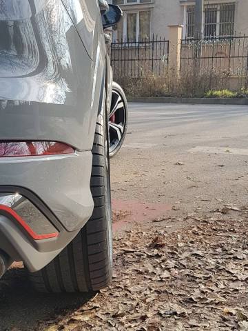 Si cum azi a fost weekend, am sacrificat mai toata ziua pentru proba setup-ului de vara. Din fericire cauciucurile, jantele, distantierele si noile prezoane se potrivesc de minune pe masina si nu sunt probleme de niciun fel. Am facut cateva zeci de kilometri astazi (accelerari mai puternice, franari, bracari ale rotilor, etc.) cu suspensia atat in setare confort cat si in sport si nu am observat un comportament schimbat al masinii. Din punct de vedere al aspectului, mi se pare mult imbunatatit datorita design-ului mai dinamic al jantelor si cumva mai aproape de cum ar fi trebuit sa arate masina din fabrica (in opinia mea). Rotile ies mai in afara datorita distantierelor de 12mm, dar nu atat de agresiv, in partea de sus inca se incadreaza sub aripa. In partea de jos a spoilerului oricum ies si cu jantele OEM destul de mult, asa ca nu vad sa fie o problema. Mai multe impresii si poze la primavara, cand le voi monta pe masina definitiv. Pentru moment m-am linistit ca totul e in regula si ca nu trebuie sa ma agit cu vandut jante, returnat distantiere, etc. Per ansamblu, sunt foarte incantat de rezultat, mai ales ca a costat toata distractia o treime fata de cat ar fi fost la reprezentanta.1 point