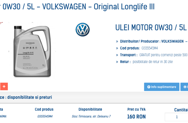 A facut bine. Noul ulei vw are vascozitatea 0W30 pentru norma 507.00 asa ca nu a gresit cu nimic. @George2244 avand in vedere ca ai facut 10.000km in 6 luni sigur majoritatea au fost facuti extraurban. Daca nu ai mers constant cu 5000rpm poti sa-l tii pana la 15.000km. Neamtul merge 30.000km si mai nou la noi e recomandat tot asa, dar mai mult de 15.000km nu as merge cu un ulei, fie el si long life.1 point