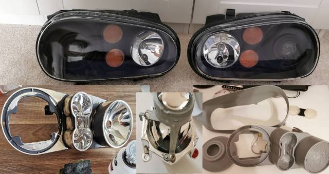 inca nu am ajuns sa fac noul soft pentru ca mai am de remediat ceva pe la motor. si mi-a mai venit o idee.... sa aduc compartimentul motor la aspectul "de fabrica". asa ca am cautat o carcasa oem pentru filtrul de aer cu maf de 80mm. dupa ceva cautari am descoperit ca audi TT cu cod motor APX are carcasa de carea aveam nevoie. asa ca am facut rost de una. filtrul va fi de la ITG ( cred ca si cel de la VWR este tot ITG ) am montat si celalalt set de faruri ( provizoriu , pentru ca va trebui reparat si la astea motorasul de regla , m-am grabit si nu am mai verificat inaintej). farurile vechi au fost si ele reconditionate ( la farul din stanga am refacut instalatia electrica si am schimbat motorasul de reglaj iar la cel din dreapta am schimbat tot . am si revopsit interiorul pentru ca incepuse sa se cojeasca ( cel ce a vopsit initial interiorul a dat vopsea direct , fara sa matuiasca macar oglinda)1 point