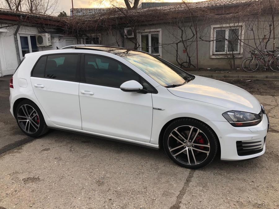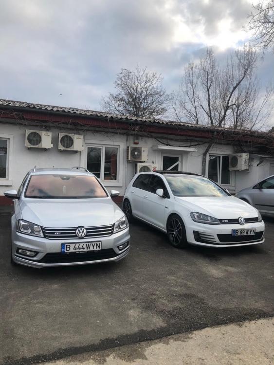 Dupa ce am vandut Octavia, am mai avut un BMW e90 320xd pe care l-am vandut, iar in decembrie am achizitionat un Golf 7 GTD, fabricatie octombrie 2013 (in carte este 2013, dar seria este de 2014.. nu inteleg de ce fiindca deobicei la VAG ar fi trebuie sa fie trecuta 2014). Masina a fost achizitionata din Romania de noua, eu fiind al doilea proprietar. Dotari: -pachet sport&sound -DCC -plafon panoramic (trapa) -DYNAUDIO -senzori ploaie + lumini -bixenon adaptiv -proiectoare led -stopuri led -senzori parcare 360 cu parcare automata -oglinzi pliabile electric -navigatie Discover Pro -comenzi volan -maxidot color -pilot automat -autohold (sistem de sustinere a masinii in panta, rampa etc) -pachet lumini interioare (usi, praguri, picioare, parasolare) -privacy glass (geamuri fumurii de fabrica pe spate si folie Llumar pe fata) -4 geamuri electrice -scaune fata incalzite -jante aliaj 18" Masina are 150.000km, iar de cand am luat-o i-am facut revizia (toate filtrele + ulei Motul), am inlocuit placutele frana fata si am pus folie Llumar GN35(verde) pe geamurile fata, pe spate avand privacy glass. P.S. Am pus o poza si cu fostul BMW.