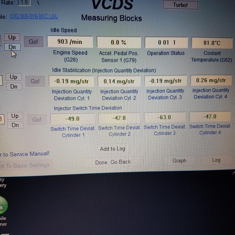 Salut. La motorul 1896 Avq  de 74 kw am sesizat ca intrerupe , se balbaie la relanti cand se incalzeste , iar daca cuplez clima merge rotund. Valorile la injectoare sunt cat mai aproape de 0 si avansul este la -1,5. Ce ar putea fi ?