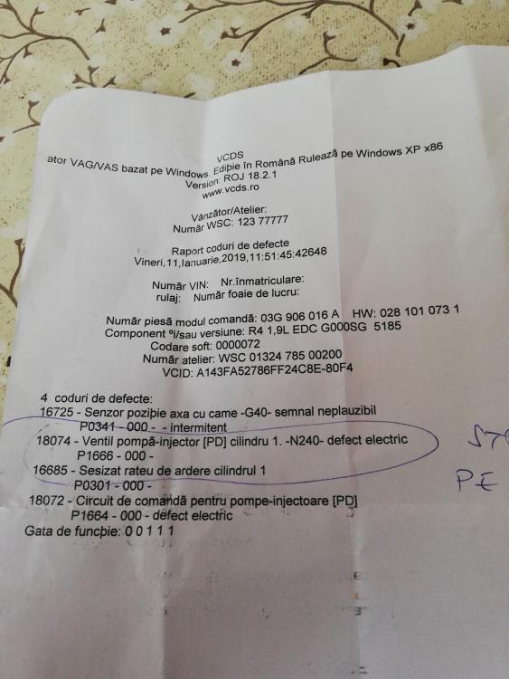 Din cate mi s-a spus in service a sarit distributia -> motor "salata de varza". Dat fiind faptul ca aceasta masina mi-a mancat toti dracii, nu o mai repar . Am scos-o deja la vanzare pentru piese..........si cu asta s-a incheiat pentru mine "epopeea VW"