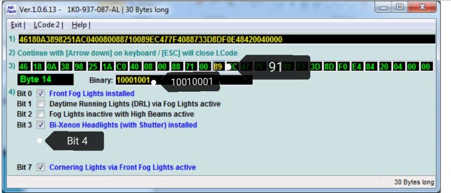 "Pai ti-am zis ce sa setezi - tipul ti-a setat prost: el ti-a setat Byte 00 /Bit 01. Trebuie sa setezi Byte 03/Bit 04. Practic el ti-a setat pt Bi-Xenon."
