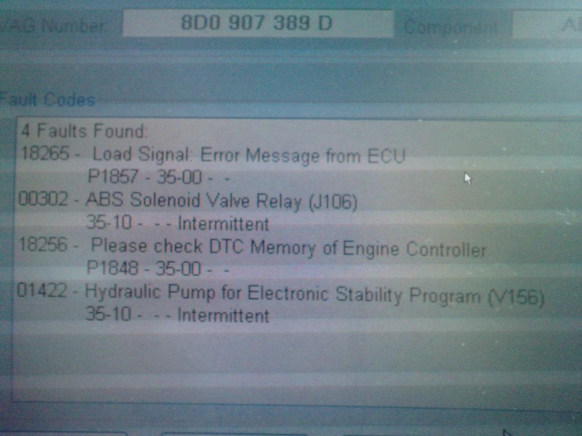 Problema ta este de la motor si nu de la ABS/ESP . fa o diagnoza si vezi ce apare pe ECU motor in primul rand, si apoi ce e pe ABS. posteaza erorile sa vedem cauza.