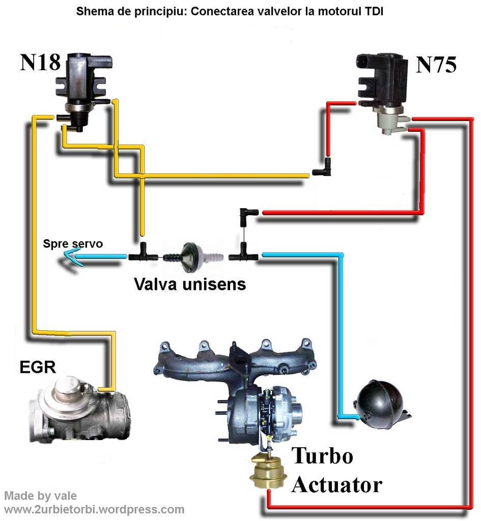 Schema pusa de mine este modificata in sensul ca am sters cateva trasee intre a treia valva si restul sistemului plus ca eu nu am mufa pentru furtunas la filtru de aer, problema este daca ma iau dupa schema modificata de mine sa nu stric ceva la masina, eu acum merg cu masina fara furtunul care leaga n75 de turbo iar daca fac legatura intre ele dabea mai accelereaza masina, am observat ca intre n75 si turbo am presiune de aer in sensul ca daca pun degetul cu motorul pornit trage aer , nu stiu daca e ok asa.