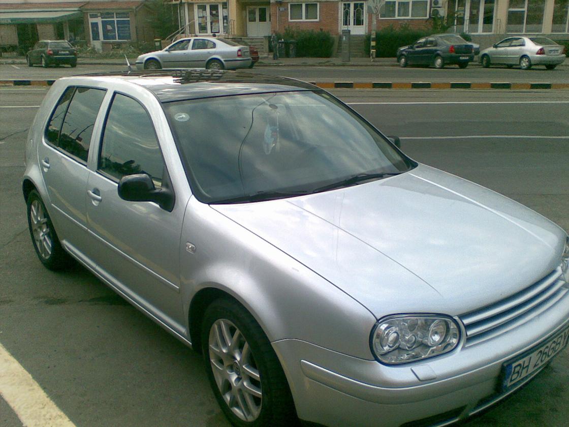 Este un Golf 4 din 2001-gri metalizat.