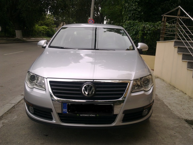 Sa va prezint noua mea masina adusa din Germania. Este vorba despre un VW Passat B6, fabricatie martie 2009, motor 2.0 TDI CR 110 cp, 31000 km. Optiuni: dublu climatronic, scaune incalzite fata, senzori de parcare fata-spate cu afisare pe display-ul RCD-ul 310, proiectoare ceata, senzor lumina, senzor ploaie, tempomat, iesire auxiliara in cotiera fata, geamuri electrice fata, oglinzi electrice si incalzite, oglinda interioara heliomata.