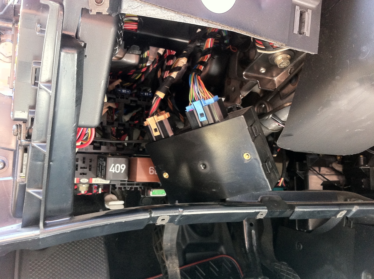 Azi am demontat plasticele sub bord ca să văd codul de pe modulul de confort să pot rezolva problema cu închiderea geamurilor din telecomandă.